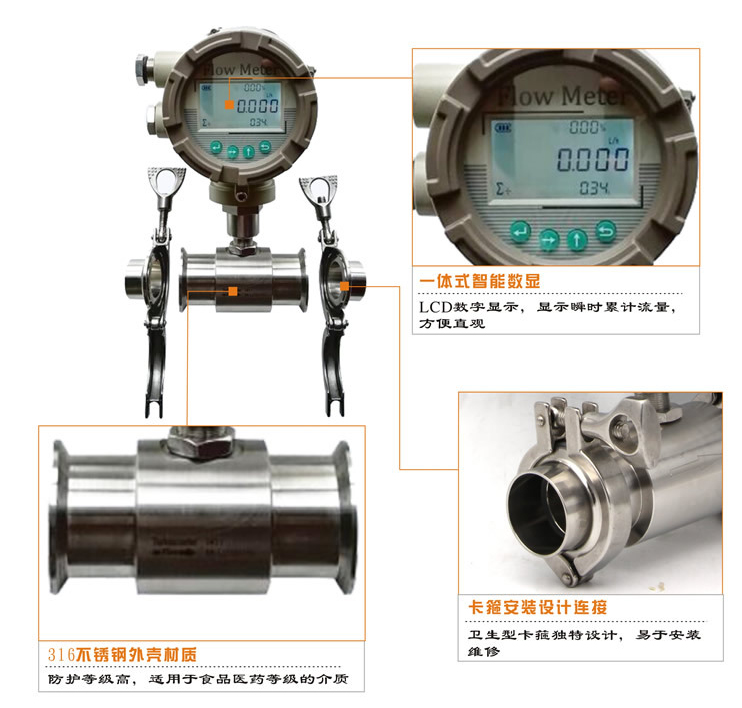 衛(wèi)生渦輪流量計(jì)是一種精密流量測(cè)量?jī)x表,與相應(yīng)的流量積算儀表配套可用于測(cè)量液體的流量和總量。液體渦輪流量計(jì)廣泛用于石油、化工、冶金、科研等領(lǐng)域的計(jì)量、控制系統(tǒng)。配備有衛(wèi)生接頭的液體渦輪流量計(jì)可以應(yīng)用于制藥業(yè)。