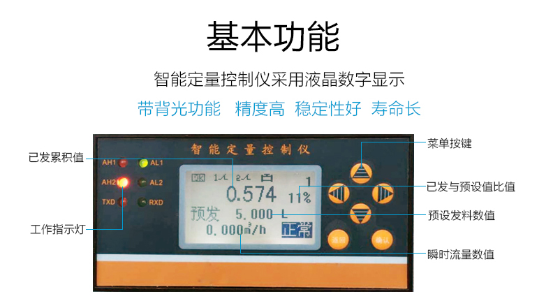 智能定量控制儀是采用先進(jìn)的單片微機(jī)技術(shù)開(kāi)發(fā)出的新型流量測(cè)量控制儀表。智能定量控制儀具有體積小、重量輕、操作簡(jiǎn)單,顯示讀數(shù)直觀,清晰、可靠性高等優(yōu)點(diǎn),與渦輪、渦街等脈沖輸出的流量傳感器及電磁閥配套組成流量控制系統(tǒng),適用于石油、化工、醫(yī)藥食品等行業(yè)的流量定量控制儀。智能定量控制儀具有8位數(shù)碼管和51線(xiàn)光柱實(shí)時(shí)顯示當(dāng)前批量的進(jìn)度,直觀明了。流量定量控制儀具有良好的人機(jī)界面,修改設(shè)定值及控制操作方便簡(jiǎn)單。流量定量控制儀內(nèi)置大容量觸點(diǎn)的繼電器,并有斷電保護(hù)裝置,有高可靠性和長(zhǎng)壽命。