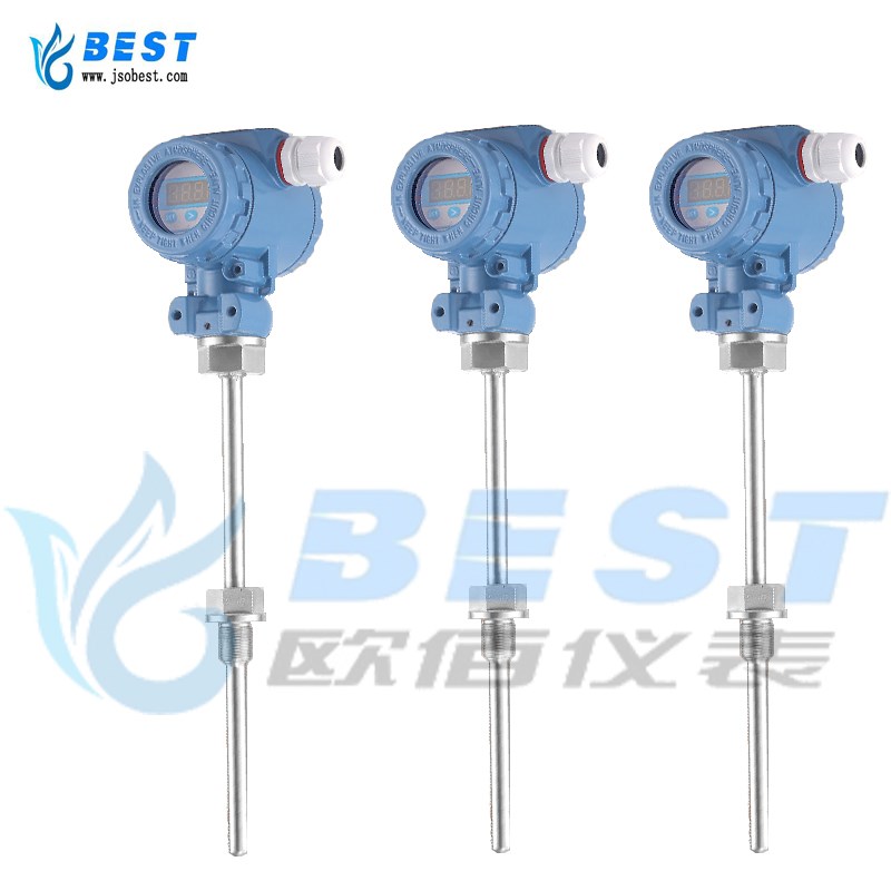 現(xiàn)場顯示溫度變送器現(xiàn)場安裝式溫度變送器單元,與工業(yè)熱電偶、熱電阻配套使用,它采用二線制傳輸方式(兩根導線作為電源輸入和信號輸出的公用傳輸線)。將工業(yè)熱電偶、熱電阻信號轉換成與輸入信號或與溫度信號成線性的4-20mA、0-10mA的輸出信號。一體化數(shù)顯溫度變送器可直接安裝在熱電偶、熱電阻的接線盒內與之形成一體化結構。它作為新一代測溫儀表可廣泛應用與冶金、石油、化工、電力、輕工、紡織、食品、國防以及科研等工業(yè)部門 。