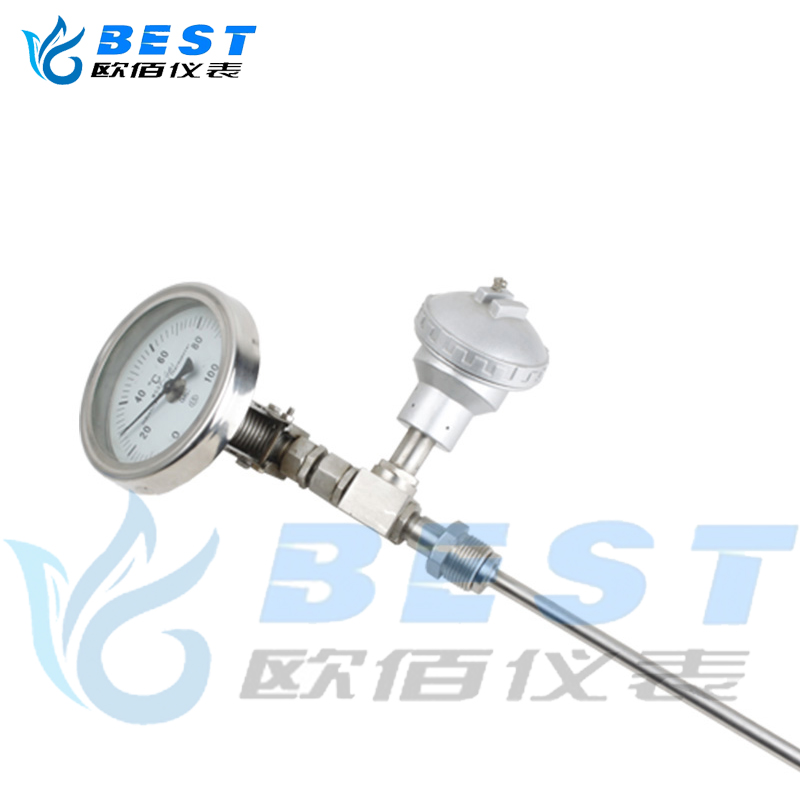熱電阻帶遠傳雙金屬溫度計是現(xiàn)場就地顯示和遠傳電信號的溫度傳感器。它既可以現(xiàn)場指示溫度又可傳送熱電偶(阻)和二線制溫度變送器信號,作為新一代的溫度計,可廣泛用于冶金、石化、電力、輕紡、食品、國防等工業(yè)部門。熱電偶(阻)、雙金屬溫度計或溫度變送器為一體。適合在惡劣環(huán)境長期工作。遠傳電信號精度高,工作穩(wěn)定。也可直接以二線制的形式輸出,提高信號長距離傳送過程中的抗干擾能力。性能價格比高。